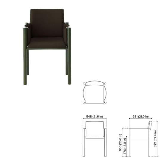 Kawara 扶手椅(綠橡木、咖啡布面)