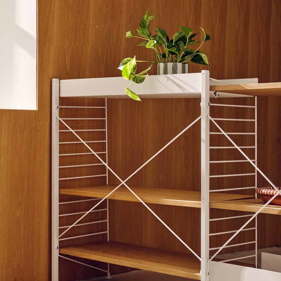 String Furniture 是北歐最為經典的系統收納傢俱代表。現代設計大師 Nils Strinning 自使用者角度出發,開發出一系列簡約俐落、擁有高度靈活性的實用層架,期盼讓人透過舒心收納的過程,恣意創造出屬於自己的生活風景。