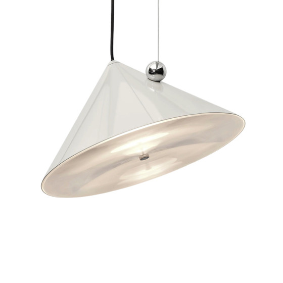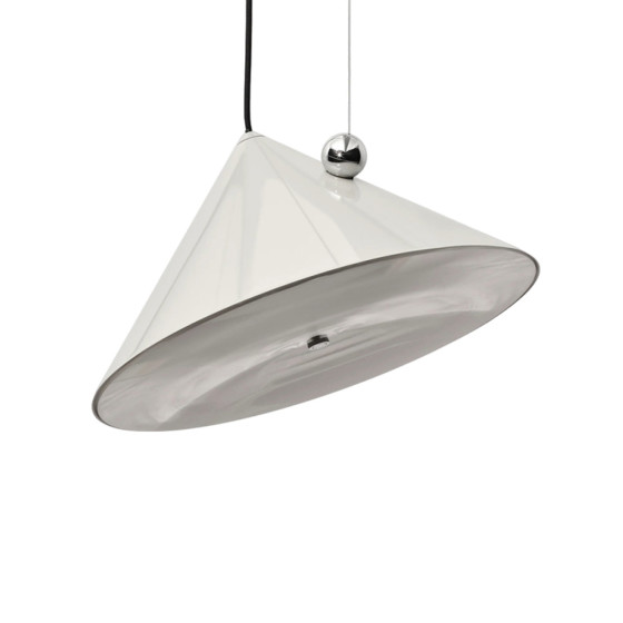《Pose》光姿吊燈為系列延伸出的吊掛式照明作品,以富雕塑感的造型,為空間帶來更鮮明的視覺存在。設計靈感來自圓錐幾何之間的平衡關係與光學原理,透過簡潔俐落的輪廓,展現《Pose》系列一貫鮮明而富個性的造型語彙。燈體內搭載 Fresnel 菲涅耳透鏡,可將光線集中並導向特定方向,使光的落點更為精準,並在空間中形成清晰而富層次的光影效果,讓光束更具層次與存在感,營造精準且富戲劇性的照明效果。