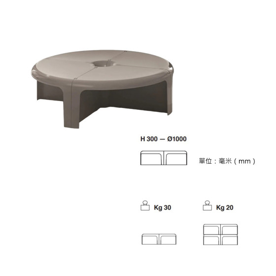 -圓桌擺放:直徑 100 x 高 30(公分)/ 承重 30(公斤)
