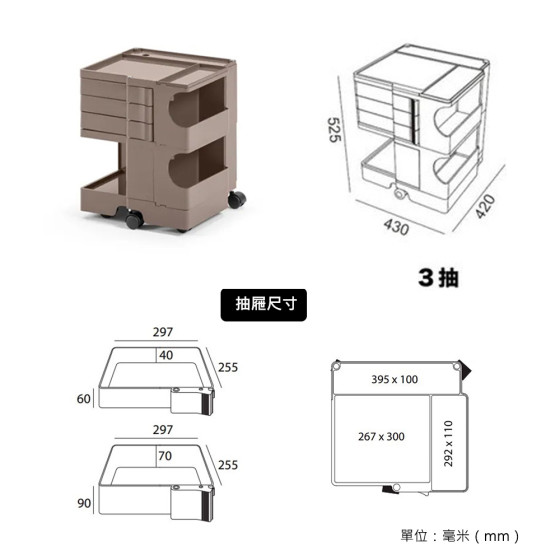 -三抽抽屜:長 29.7 x 寬 25.5 x 高 4(公分)