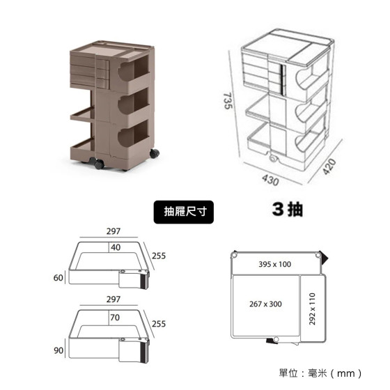 -三抽抽屜:長 29.7 x 寬 25.5 x 高 4(公分)