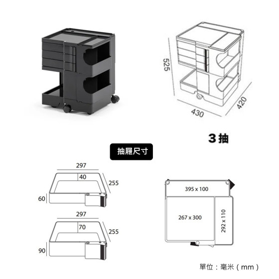 -三抽抽屜:長 29.7 x 寬 25.5 x 高 4(公分)