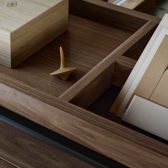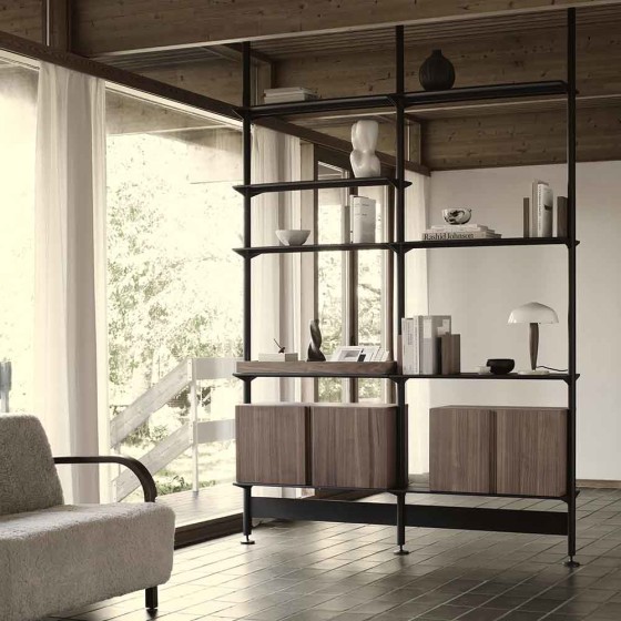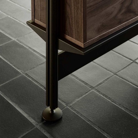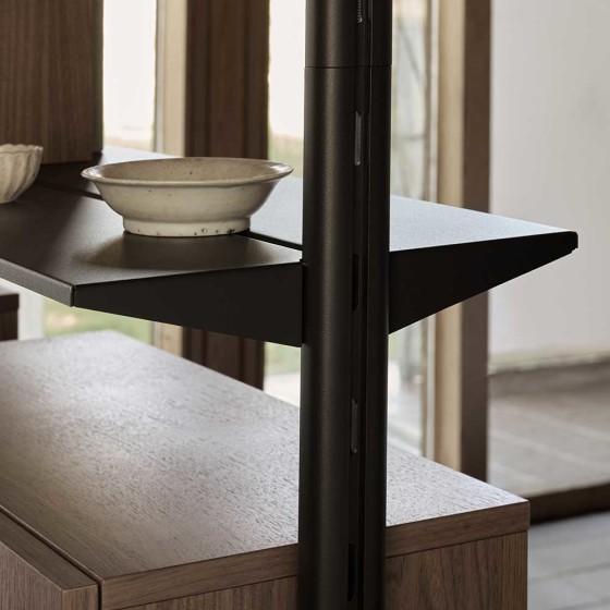 Pira G2 以高品質材料打造,層板採用烤漆鋼板,立柱為壓鑄鋁材質,其製造精密度細至 0.02 毫米,每片層板最高承重 50 公斤,而整體結構可達 350 公斤,展現出嚴謹工藝與耐用性。櫃體與配件則提供胡桃木、淺橡木、玻璃等材質,溫潤木質與冷冽金屬形成鮮明對比,增添層次質感,無論珍藏展示或日常收納,皆能從容承載。