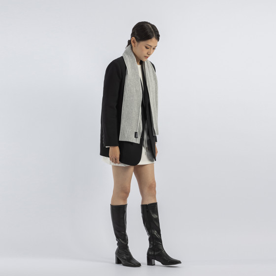 簡單無比的褶紋設計,卻可以產生豐富的視覺變化,一如北歐人注重簡約實用,因此搭配衣服相當容易。用短圍巾直接披上,讓鬆軟的褶毛絨呈現自然飄逸感,再配上單色上衣就是正統的北歐風格。搭配上,不論放進外套裡簡單披掛或是將下擺藏進圍繞處,都能俐落使用,頸部露出獨特的褶紋毛絨,讓路人遠遠一看就能察覺到你頸部上的亮點!