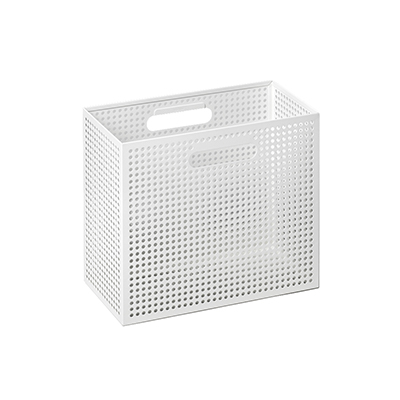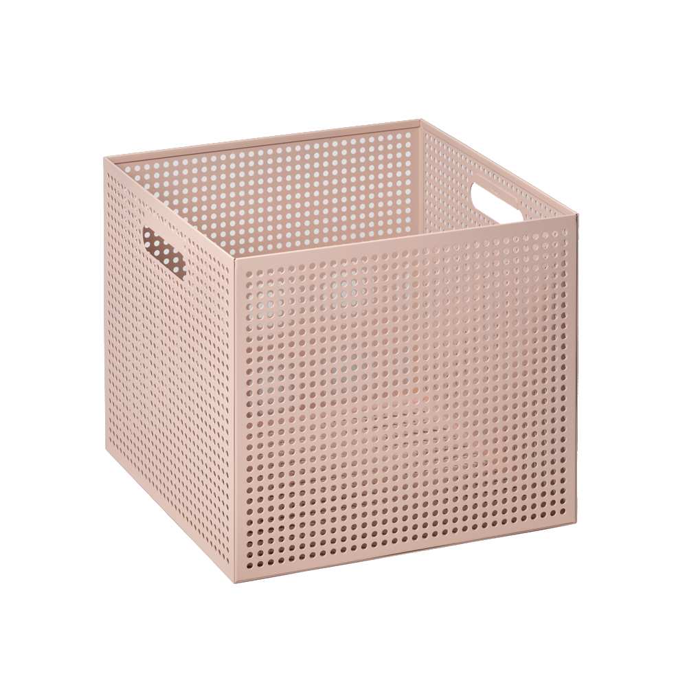 回國後他深入探索台灣製造產業,與在地 30 年經驗豐富的金屬工廠合作,將鐵板透過精密的電腦沖壓技術,切割出規律的圓形孔洞,並經過多道折板工序、焊接工藝,使結構更加穩固而經用,彎折與接縫處細膩而平整。從發想到完成耗時了三年的光景,創造出了能依照需求自由模組化的 THE BOX,並提供大、小兩種尺寸。不管是當作收納箱、雜誌盒、小朋友的玩具箱,又或是堆疊組合成書櫃、置物櫃、邊几等。任何居家收納難題,交給 THE BOX 都能輕鬆搞定!