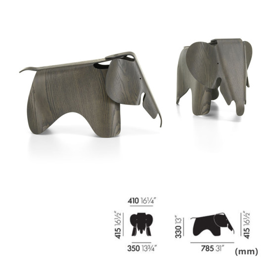 在加工技術不甚成熟的40年代,夫妻倆苦心鑽研多年才成功的 Plywood 彎曲技術,首件作品便選擇了他們最愛的精神動物大象成為主要外觀,柔和溫潤的圓弧線條,搭配簡約式的意象形體,製成後更贈送給最疼愛的女兒成為愛的禮物,無奈礙於當時生產不易,輾轉之下原創作品至今安穩的收藏在紐約 MoMA 現代美術館中,接受全球設計迷朝聖觀摩!