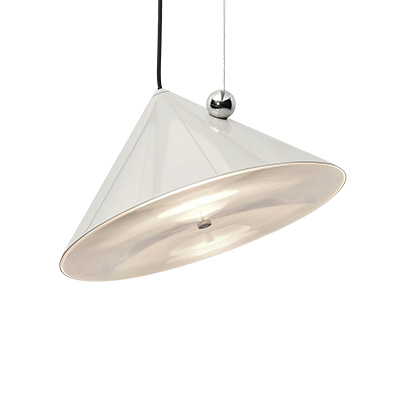 Void 飛碟系列其實相當適合暗色系的空間,因其金屬的反射特性能為室內帶來溫暖的潤澤光暈,無論一盞或多盞,有高有低恣意懸掛空中,就像許多神秘客前來拜訪似地有趣。爾後因大受歡迎,更推出精緻的 Void 小飛碟系列,微巧的尺寸合於各種現代摩登小空間,果物造型有如希臘神話中引起女神們爭執妒忌的金蘋果,話題性十足。