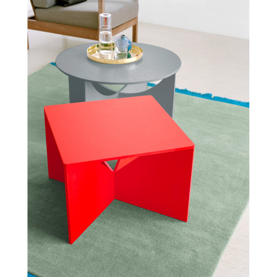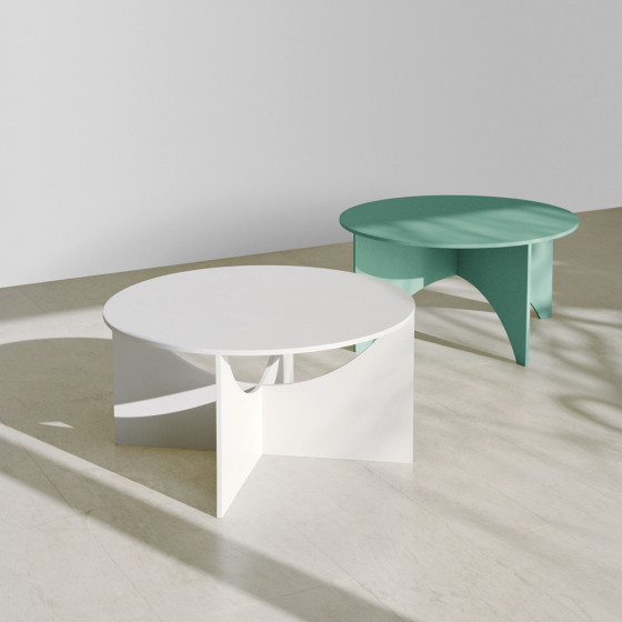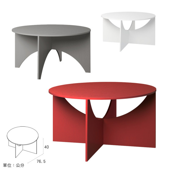 系列之中的 Charlotte 幾何圓咖啡桌,是 Calvert 幾何方咖啡桌同時期的衍生作品,Ferdinand Kramer 並以好友 Charlotte Poseneske 之名來紀念命名。同樣獨特純粹不繁複的外觀,是由三片細緻上色的幾何形狀膠合木板組成,正圓形的桌面用途廣泛,視覺飽滿寬闊。結構上不僅安裝容易,只要稍微將桌腳翻轉過來,就成了另一種風貌的矮桌,在居家搭配上又多了一分變化。