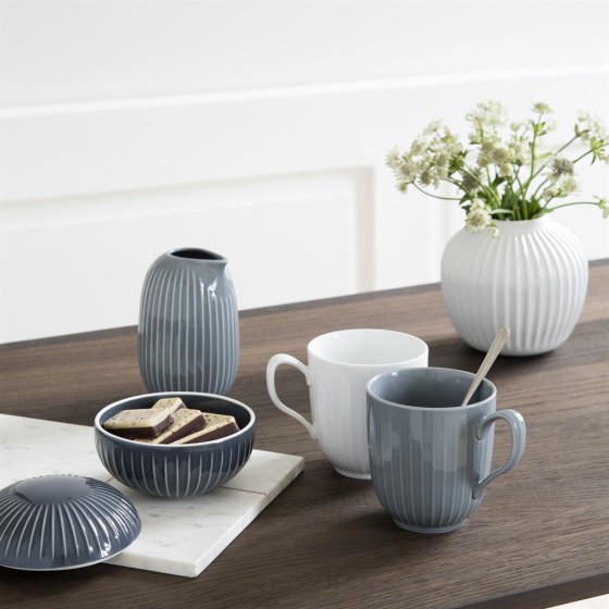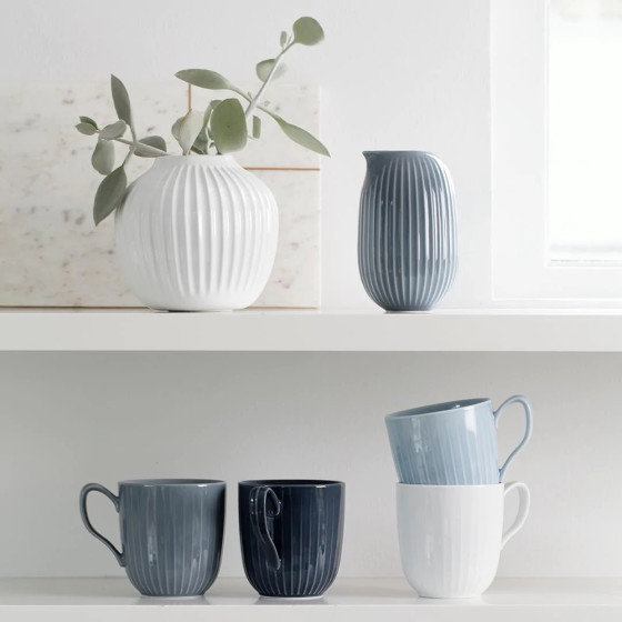 Hammershøi 系列的設計發想來自藝術家 Svend Hammershøi,為 19 世紀丹麥重要畫家及陶藝家,於 1893 年開始參與 Kähler 的商品設計,推出多款輪廓鮮明、線條強烈的陶藝作品。當代設計師 Hans-Christian Bauer 以此為靈感,將其標誌性的古典紋飾,融合當代設計語彙,轉化為柔和手感的輪花刻紋,2015 年上市推出,便成為最成功的系列之一。