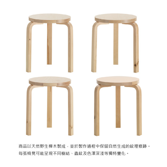 3. 此商品以天然野生樺木製成,並於製作過程中保留自然生成的紋理痕跡。每張椅凳可能呈現不同樹結、蟲紋及色澤深淺等獨特變化,訂購時恕無法指定特定外觀條件。
