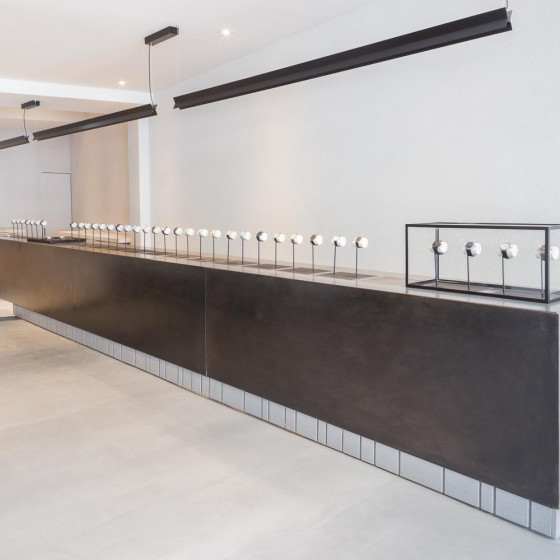 通用於不同場域的幾何形式,伴隨空間變化帶給人不同感受,懸掛於居家環境,像是客廳餐桌、餐廳中島、書房辦公桌時,能營造不干擾視覺的和諧氛圍。黑白兩色的俐落風格,也適於懸掛在藝術設計及商用空間中,如辦公室、藝廊展場、精品 showroom 等,同時也是設計工作室的最愛之一,秉持「德國製造」的高品質製程,以精良的工業技術,完美體現出極簡燈具的質感所在。