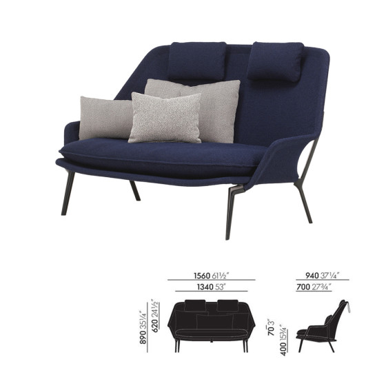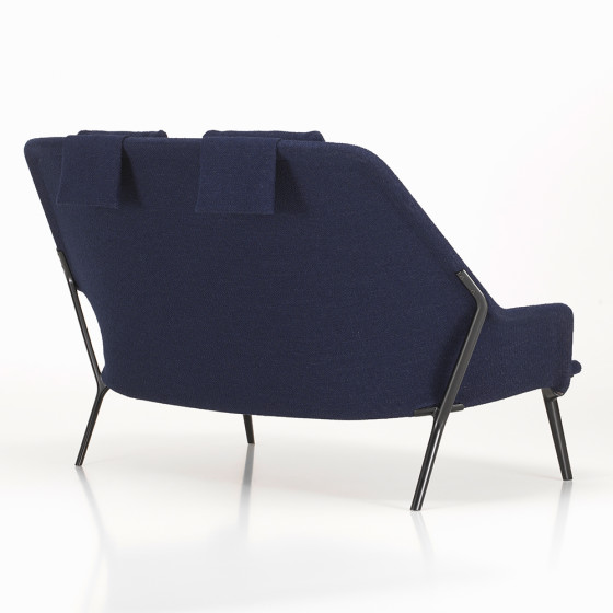 系列作品採用精準裁製的織物懸掛套(Textile Sling),將布料或針織面料,繃覆於輕巧管狀鋼架上,營造出適切下沉感與支撐力,帶來良好乘坐體驗,並透過隨附的鬆軟靠墊,進一步提升舒適感。改良版本同時強調永續材質的運用,以可回收聚氨酯泡棉(V-Foam)、 100% 再生聚酯纖維製成坐墊填充,降低對於環境的負擔。