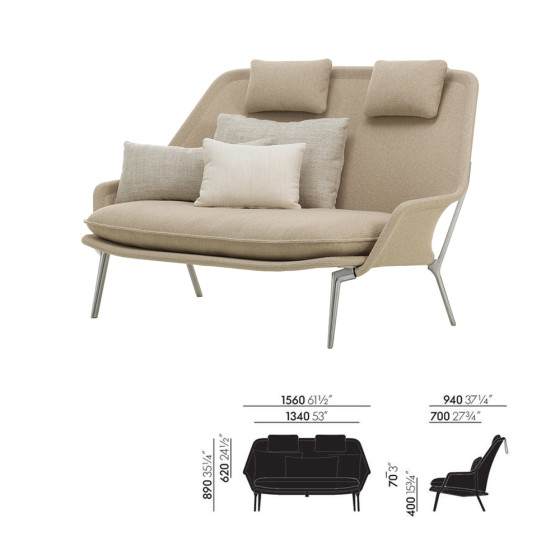 Slow 悠日 沙發(淺米布料、拋光鋁椅腳)