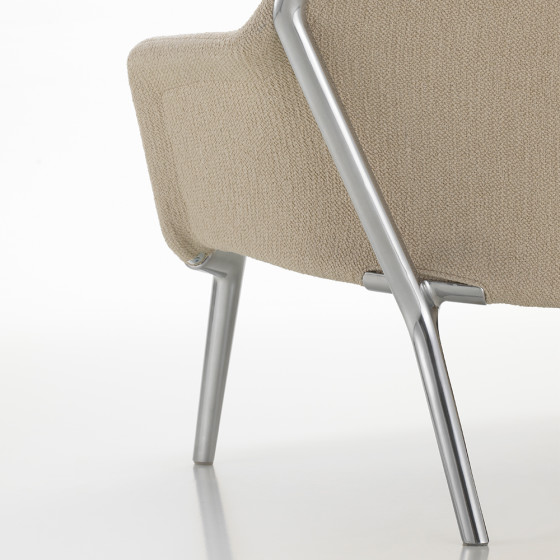 系列作品採用精準裁製的織物懸掛套(Textile Sling),將布料或針織面料,繃覆於輕巧管狀鋼架上,營造出適切下沉感與支撐力,帶來良好乘坐體驗,並透過隨附的鬆軟靠墊,進一步提升舒適感。改良版本同時強調永續材質的運用,以可回收聚氨酯泡棉(V-Foam)、 100% 再生聚酯纖維製成坐墊填充,降低對於環境的負擔。