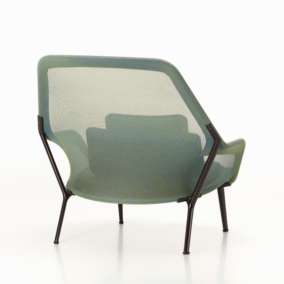 系列作品採用精準裁製的織物懸掛套(Textile Sling),將布料或針織面料,繃覆於輕巧管狀鋼架上,營造出適切下沉感與支撐力,帶來良好乘坐體驗,並透過隨附的鬆軟靠墊,進一步提升舒適感。改良版本同時強調永續材質的運用,以可回收聚氨酯泡棉(V-Foam)、 100% 再生聚酯纖維製成坐墊填充,降低對於環境的負擔。