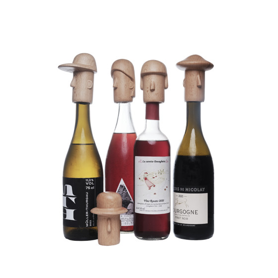 《Buddy》系列酒瓶塞,由瑞典跨界藝術家 Klas Ernflo 設計,採用山毛櫸木手工雕刻而成,每一款皆呈現簡約中帶點童趣的人物造型,充滿親切感與藝術氛圍。靈感源自於 Klas 在家中工作室的創作歷程,他最初以繪畫的形式探索《Buddy》的抽象造型與豐富色彩,後來將這些想像化為可實際使用的雕塑作品。