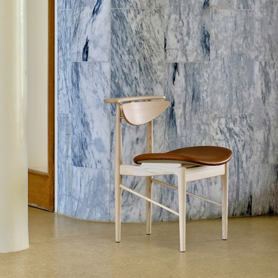 相比其他三位丹麥巨匠的作品都有「好家具除了擁有實用功能,更要能被大量製造」的設計前提,Finn Juhl 極具藝術性的家具,卻直到這張為 Bovirke 公司所創作的閱讀椅,才在經過精簡許多線條、便於量產化的考量下,真正出現為大眾而生的設計。