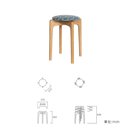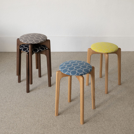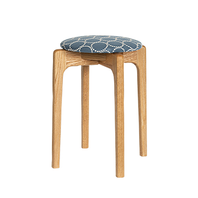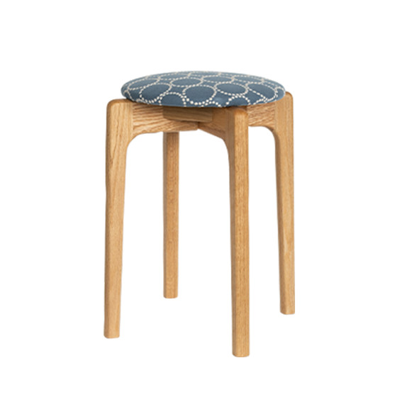 Stacking Stool 堆疊圓凳(橡木、藍鈴鼓布料)