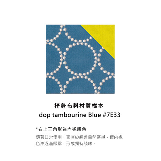 坐面:布料 dop tambourine Blue #7E33(65% 聚酯纖維,35% 棉)