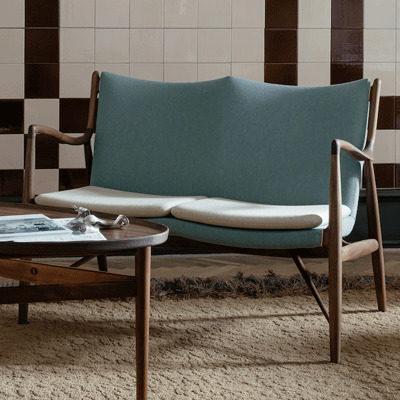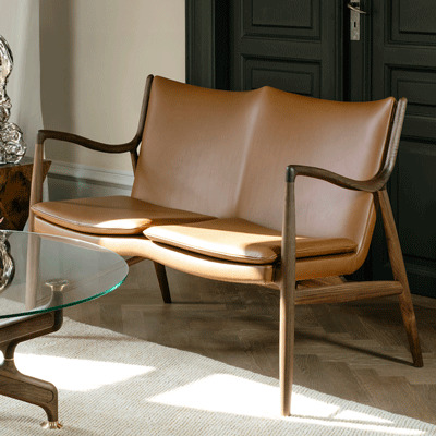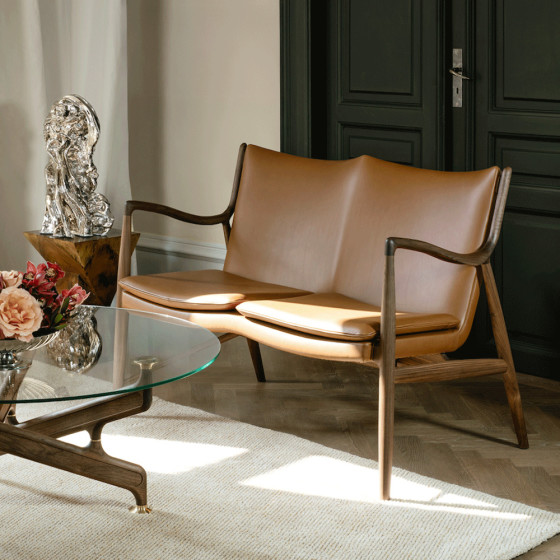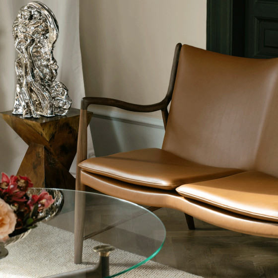 Finn Juhl 在 1945 年的櫥櫃製造商協會展覽會上,首次展出了 45 Chair ,同年他將這個想法延伸,發展出 45 Sofa 雙人沙發。為慶祝其問世 80 週年,特別推出全球限定 80 張的 45 Sofa 雙人沙發。作品完整延續其漂浮結構,將雕塑般的姿態延伸為更寬闊的比例,展現柔韌而優雅的設計。以不同材質詮釋經典,布料款以如水彩畫般的柔和質地呈現輕盈生活氣息,皮革款則選用頂級胡桃色皮革,展現內斂奢華質感。每件作品皆鐫刻專屬編號,象徵設計傳承的珍稀印記。這不僅是一張沙發,更是一段跨越八十年的工藝傳奇。