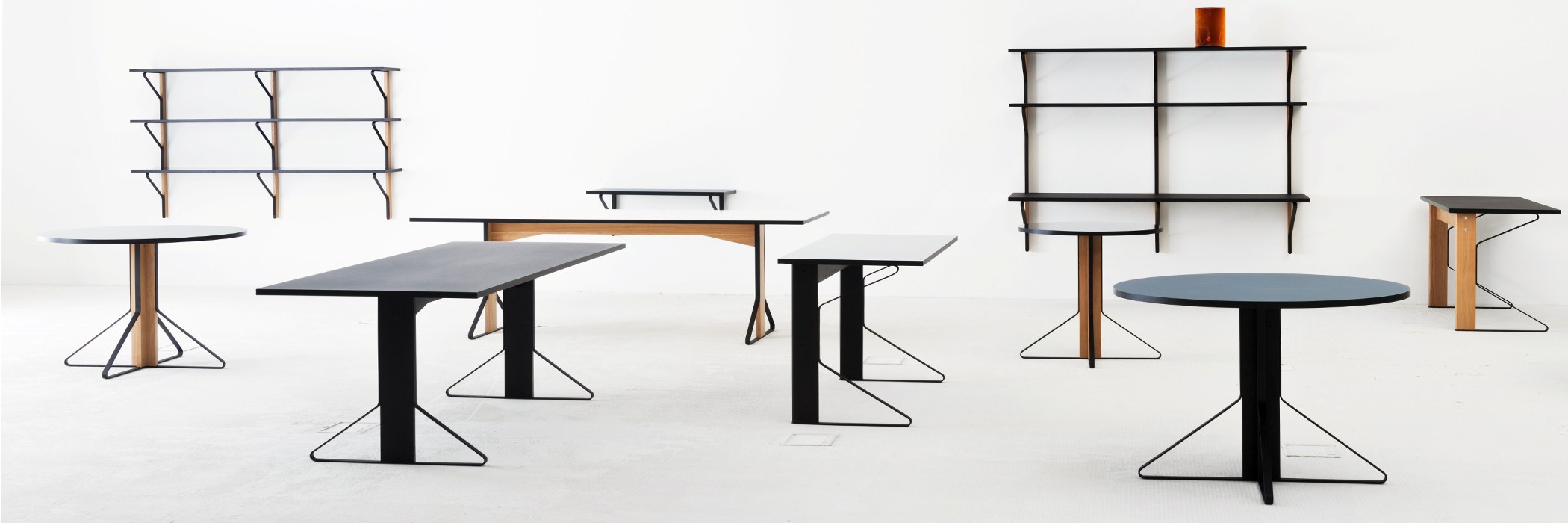 Kaari Table 弧形長桌(200 公分、白桌面、橡木/黑鋼桌腳) -