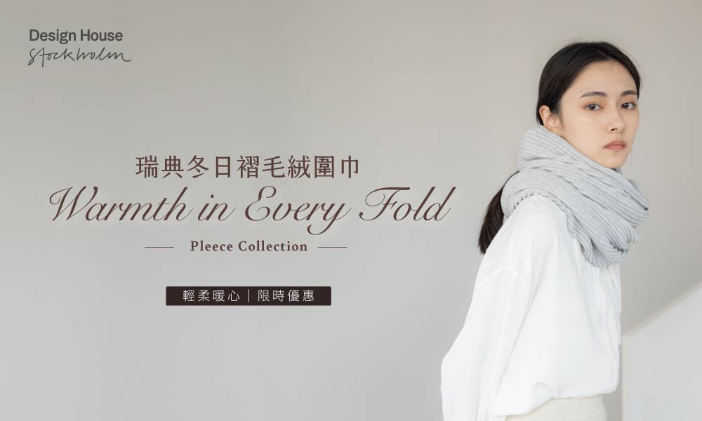 冬季的輕柔保暖提案——瑞典 Design House Stockholm 褶毛絨系列,以極簡設計與溫潤手感,詮釋北歐風格的舒適美學。採用高品質專利 Fleece 抓毛絨技術,質地輕盈、親膚不悶熱,兼具保暖與透氣。