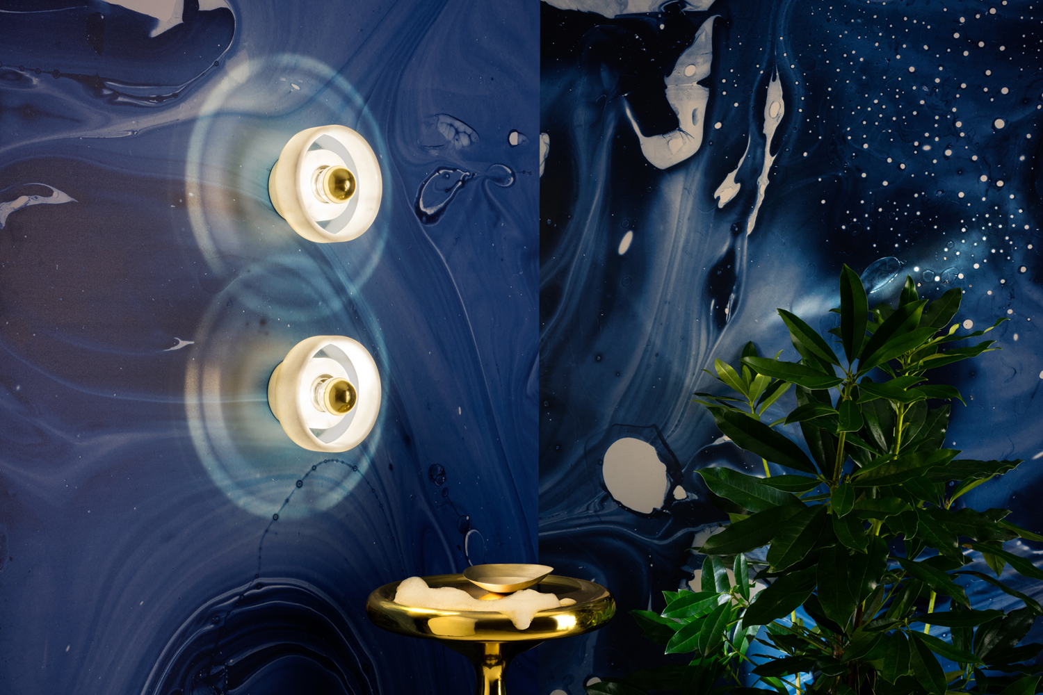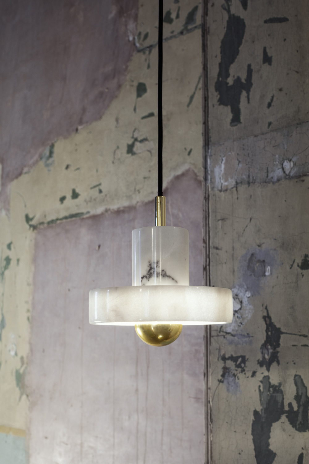 受泰姬陵之美啟發,英倫鬼才設計師 Tom Dixon 創作出「STONE」系列燈飾,每件作品皆以整磚大理石獨立雕琢,天然石材的色彩紋理具特殊分佈,讓燈飾均顯獨一無二;除此之外,大理石盡可能地被切割至最薄,使之達到半透明的視覺效果,突顯精緻表層圖紋。巧妙融合金燦黃銅裝飾元素,STONE 燈飾擁有奪目外觀之餘,散發著自然溫潤的光線;若將檯燈、吊燈與壁燈搭配展示,便能輕鬆呈現一份無與倫比的主題張力。