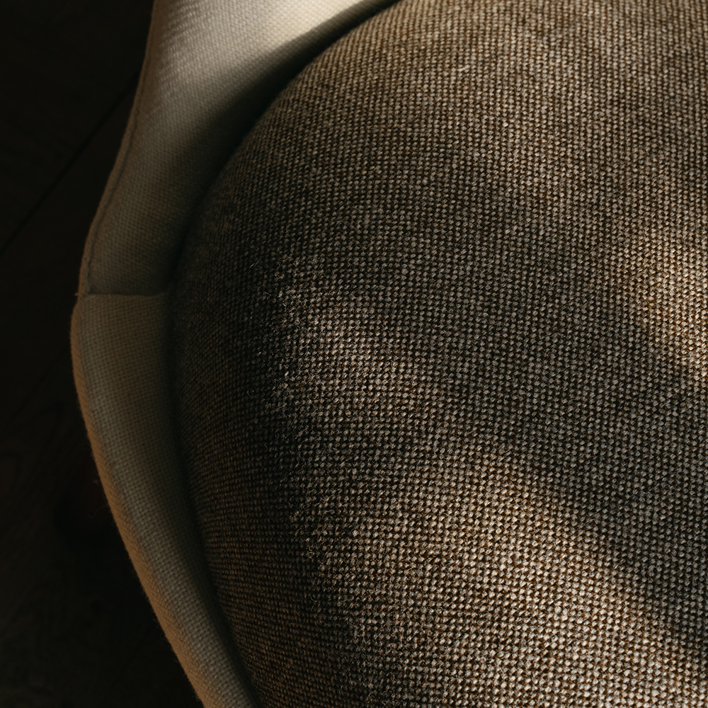 《Willadsen》是 Finn Juhl 展露藝術性與非傳統設計方法的代表作。系列最具特色之處,為座椅與靠背之間半橢圓形的「空隙設計」,其讓靠背能如拱形般懸浮於座椅之上——這在 1950 年是一個極為大膽的決定,不僅賦予作品輕盈感,亦凸顯 Finn Juhl 顛覆傳統軟墊家具形式的能力;圓潤輪廓如擁抱般包裹著坐者,而微微傾斜的椅腳,則進一步提升了整體的飄逸氛圍。