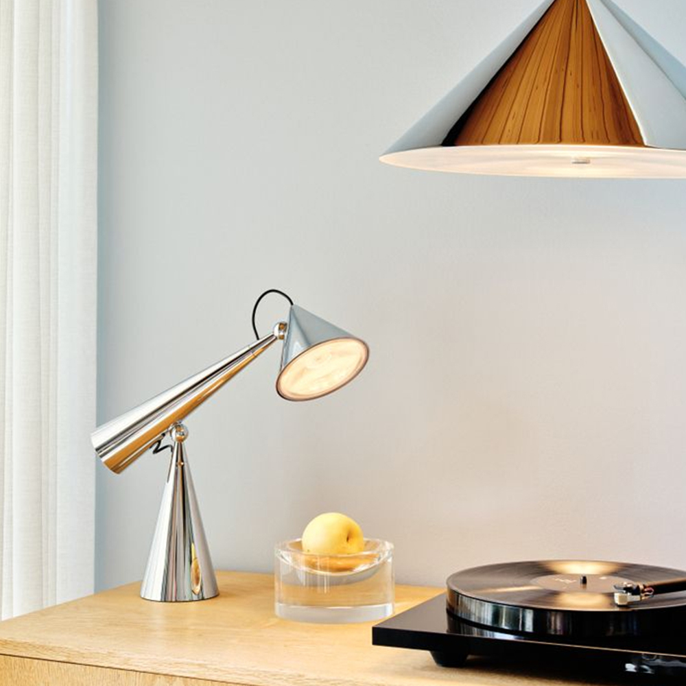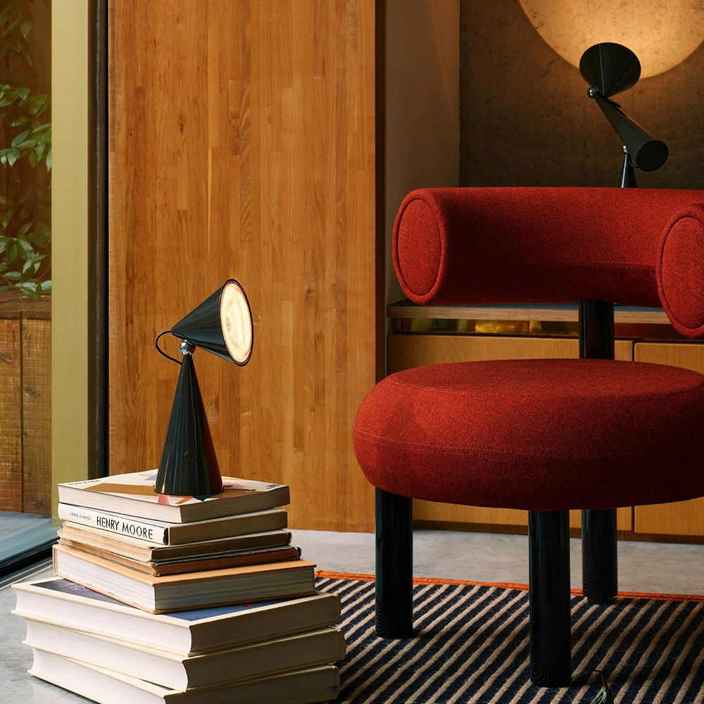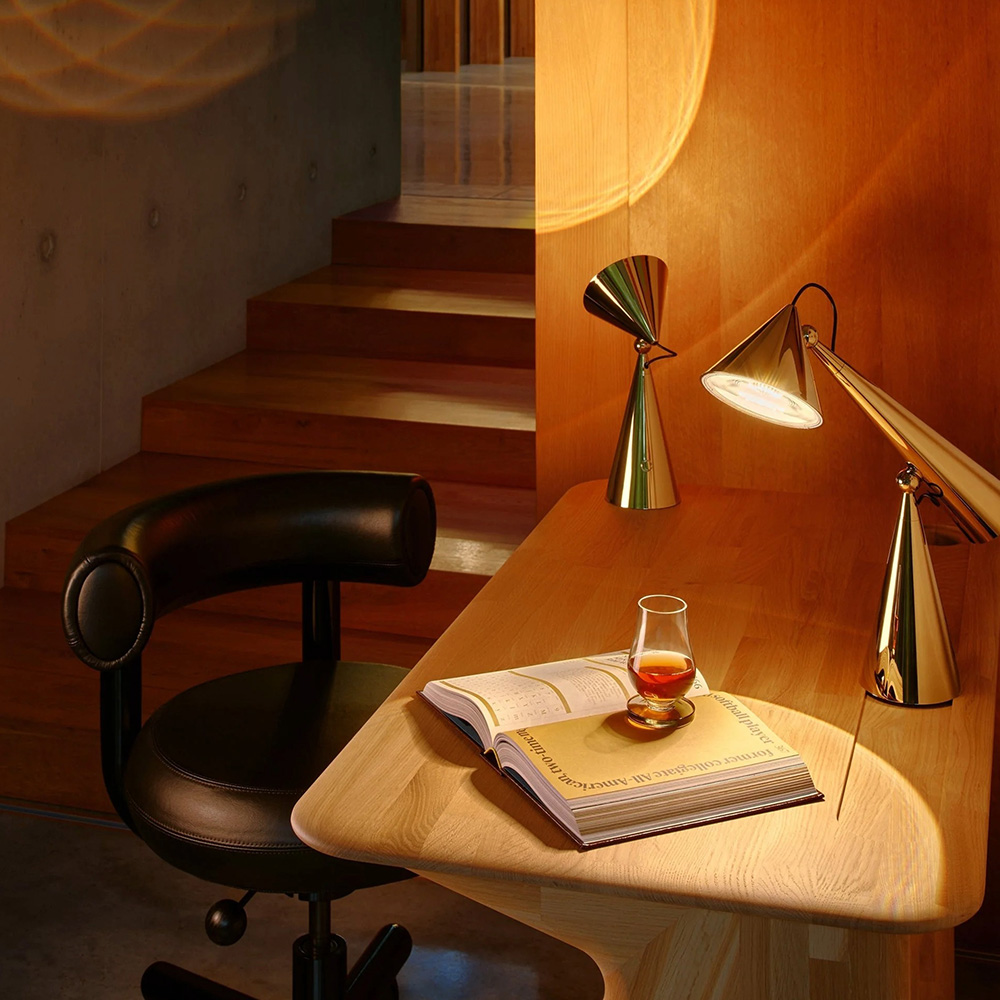 作為英倫指標性的前衛燈飾品牌,Tom Dixon 持續以設計探索光的可能。在《POSE》系列,光不再只是照明,而是一種被設計與塑形的存在。靈感來自燈塔與光學原理,透過 Fresnel 菲涅耳透鏡的結構,將光線精準聚焦並導向,形成清晰而富有層次的光束效果。圓錐幾何構成的俐落造型,搭配帶有一絲擬人感的姿態,使每一盞燈不只是光源,更像一件靜靜佇立於空間中的雕塑。